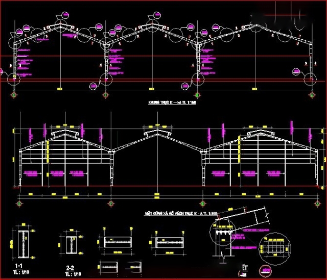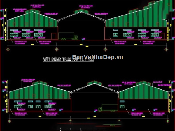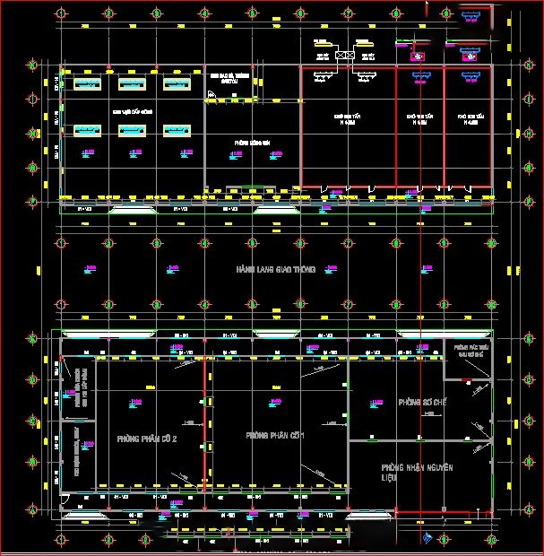 Autocad thiết kế phân xưởng chế biến thủy sản kích thước xây dựng 63x65m
