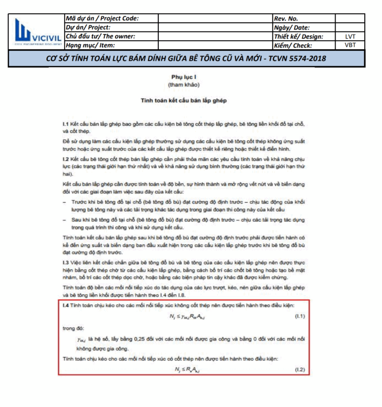 CƠ SỞ TÍNH TOÁN LỰC BÁM DÍNH GIỮA BÊ TÔNG CŨ VÀ MỚI – TCVN 5574-2018